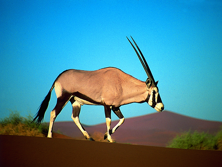 Namibia’s tourist trump card is the famous Etosha National Park. At 22 270 sq km; it is one the largest game reserves in Africa consisting of contrasting vegetation features. About 114 species of mammals are found in the park with Etosha’s elephants reputed to be the tallest in the world. Its floodlit waterholes attract a variety of game species ranging from small antelopes to big game like the elephant, lion, giraffe, rhino, etc, giving the rare opportunity to see some shy and nocturnal wildlife. Waterberg Plateau Park, established in the 1970s as a sanctuary for the rare and endangered game species of the Caprivi forms a stark contrast with Etosha.
